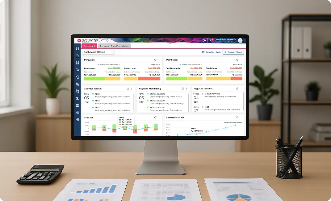 Rasakan kemudahan mengelola laporan keuangan dan pembukuan secara otomatis dengan Accurate Online. Dapatkan demo gratis dan konsultasi langsung dengan tim ahli kami. Jalankan bisnis lebih efisien dan akurat.